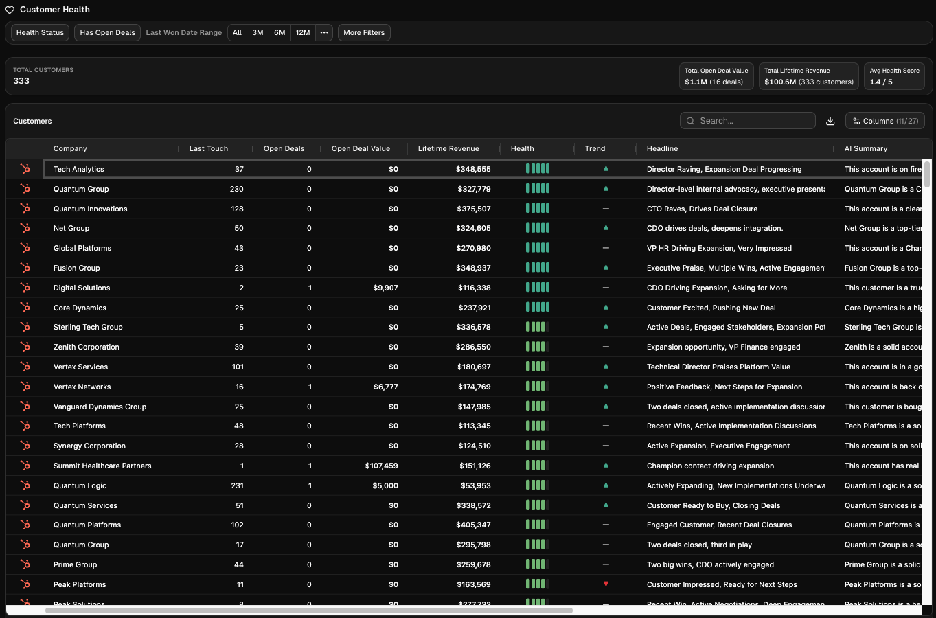 - Has Open Deals: Focus on customers with active pipeline